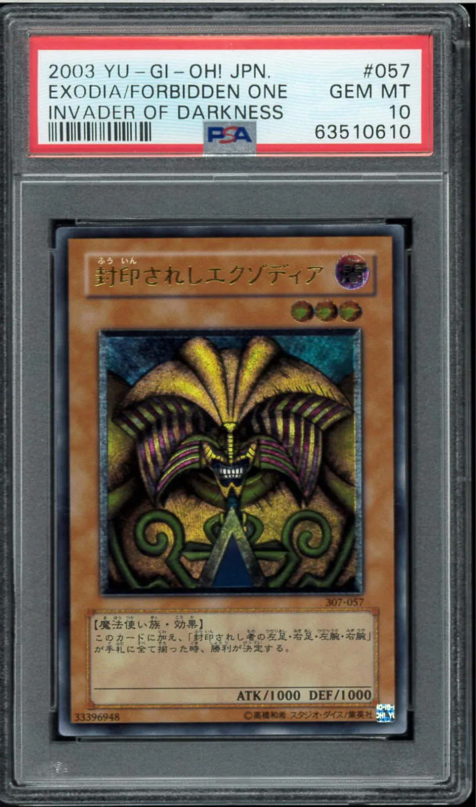 PSA10 封印されしエクゾディア アルティメットレア レリーフ 遊戯王 Y002055 | grading | ygo | mercari | ygo | ygo | ja-JP | card | PSA10 封印されしエクゾディア アルティメットレア レリーフ 遊戯王 Y002055 | 封印されしエクゾディア | WPP3-JPS01 | PSER | [{"series_id":null,"series_name":null}] | {"Year": "2003", "Brand": "YU-GI-OH! JAPANESE INVADER OF DARKNESS", "SpecID": 2267954, "Subject": "EXODIA/FORBIDDEN ONE", "Variety": "INVADER OF DARKN | 63510610.0 | YU-GI-OH! JAPANESE INVADER OF DARKNESS | EXODIA/FORBIDDEN ONE | 057 | 96706695.0 | GEM MT 10 | ||||||||||